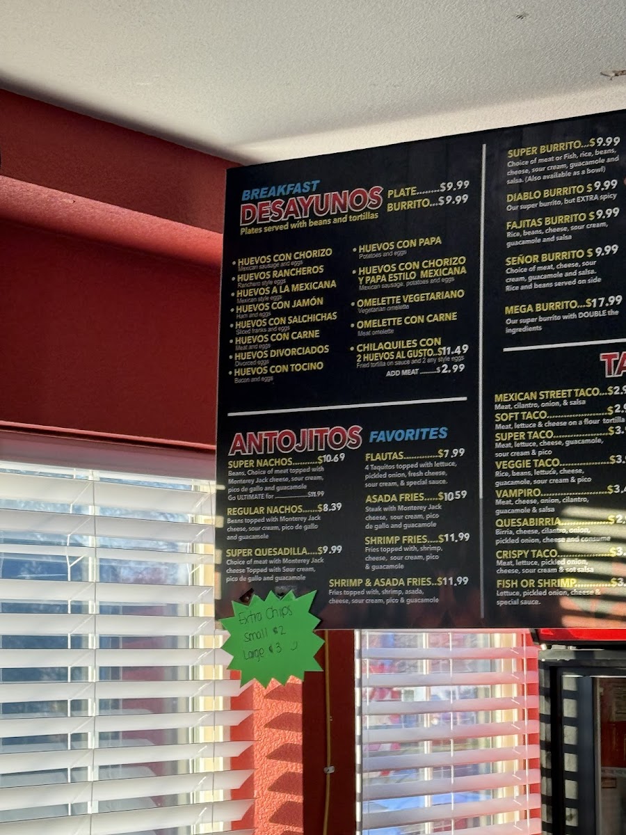 - Breakfast Delights— whether you’re craving Huevos Rancheros or the hearty Chilaquiles Con 2 Huevos Al Gusto ($13.99), starting your day here guarantees satisfaction.